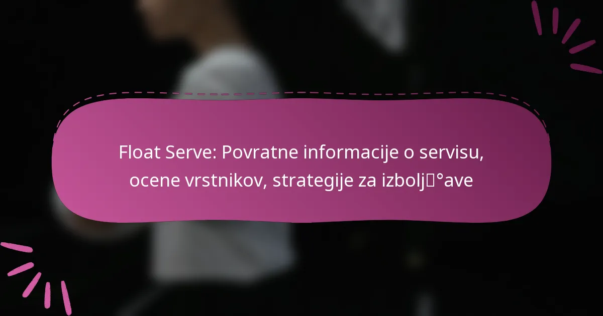 Float servis je vrsta servisa v odbojki, ki ustvarja minimalno vrtenje, kar otežuje nasprotnikom napovedovanje njegove poti. Da bi float servis izvedli učinkovito, se osredotočite na pravilen oprijem, položaj in poravnavo telesa, da izboljšate doslednost in natančnost.